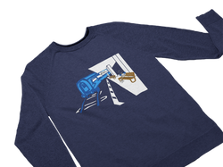 "Detroit Mic-Mover" graphic on unisex raglan crewneck sweatshirt.