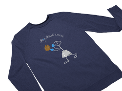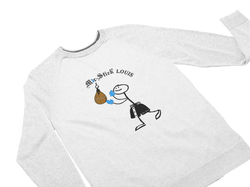 "Mic-Stick Louis" graphic on unisex raglan crewneck sweatshirt.