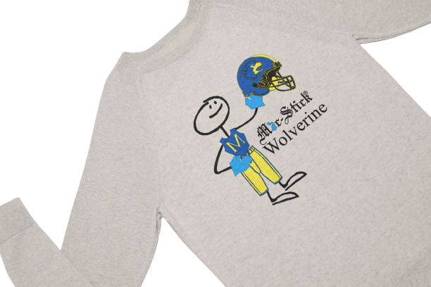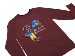 "Mic-Stick Wolverine Footballer" graphic on unisex raglan crewneck sweatshirt.
